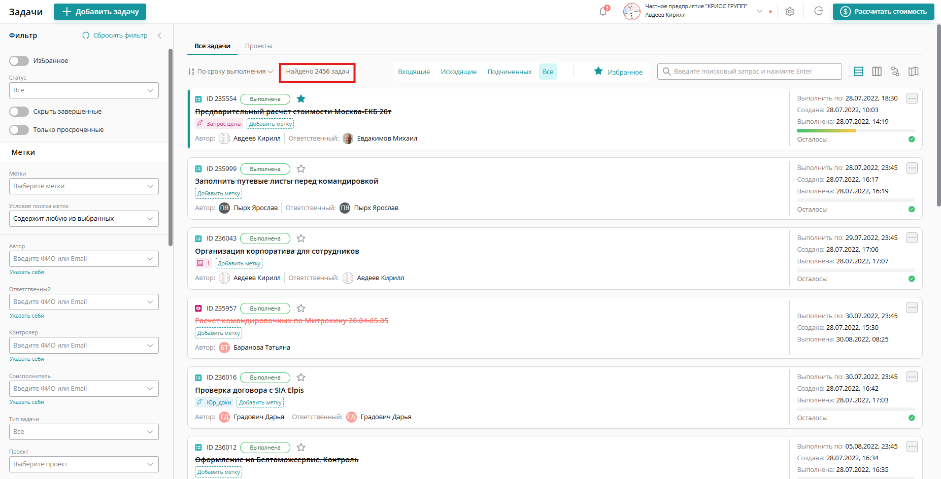 Представим, что у вас, как у руководителя, в разделе «Задачи» — более 1000 задач. Разве можно держать в голове информацию по каждой из них? Помнить, какая конкретно задача связана с каким заказом?