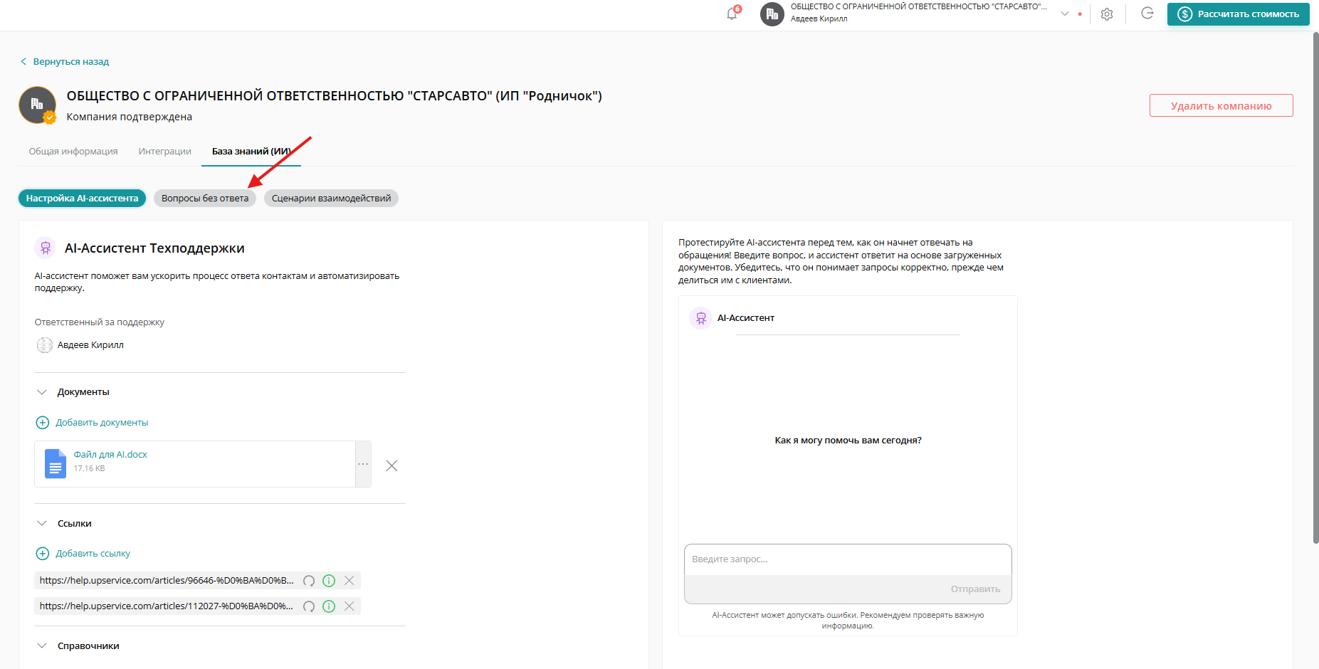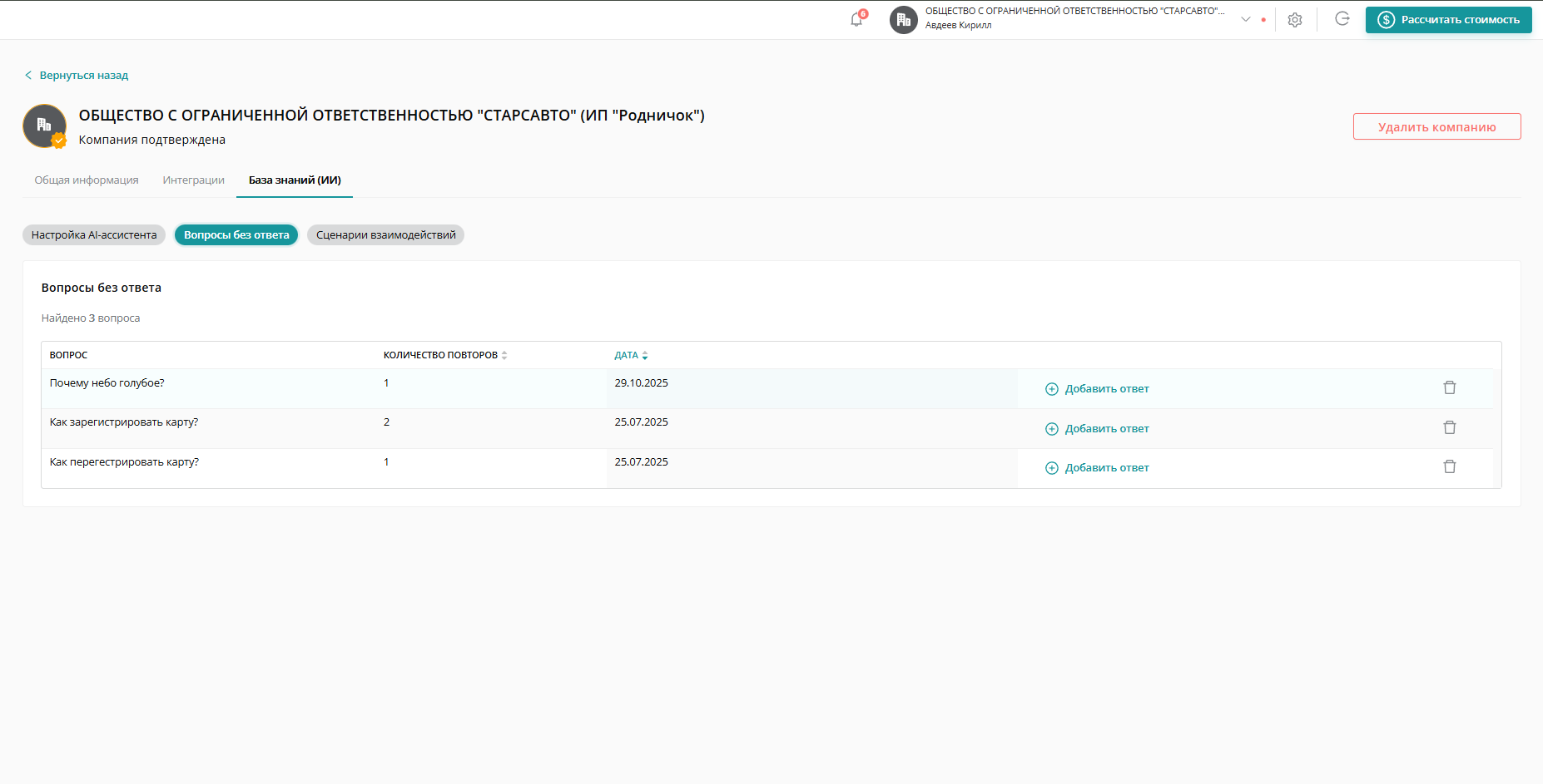 В функционале АИ-ассистента присутствует такой функционал, как "Вопросы без ответа".