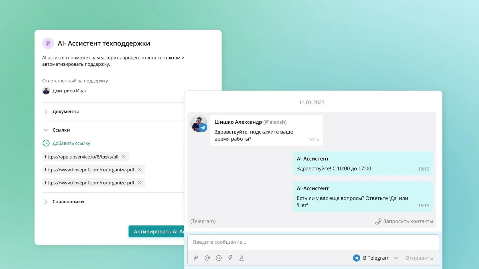 Обратите внимание! АI-ассистент будет переводить обращение клиента только на ответственного за поддержку.