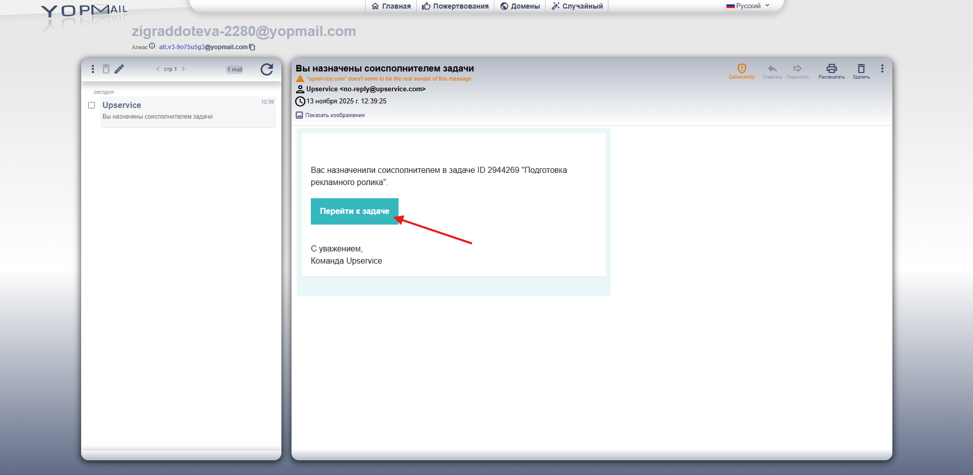 Жмем перейти к заявке и видим нашу задачу, которая находится в вашем рабочем пространстве:
