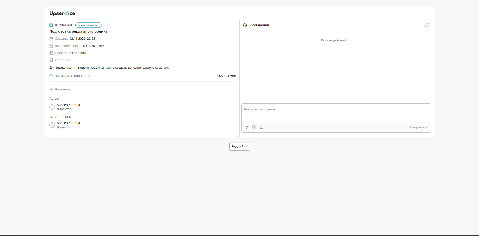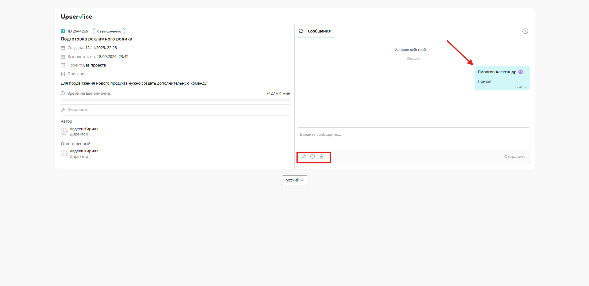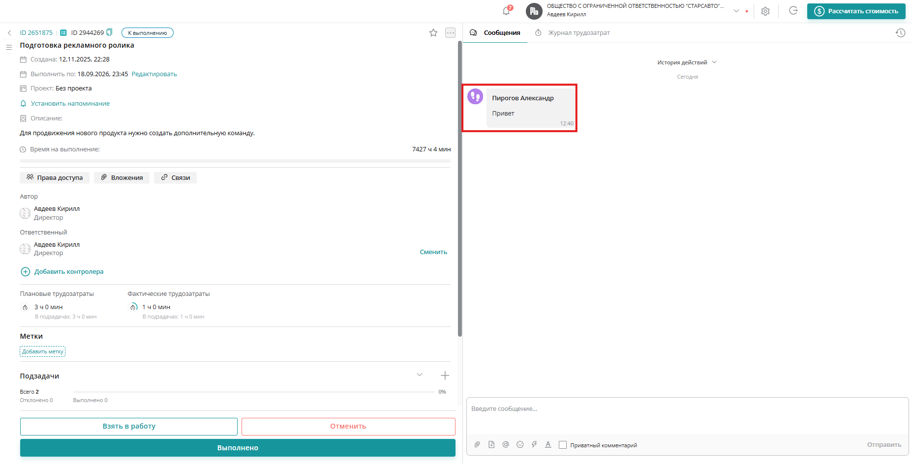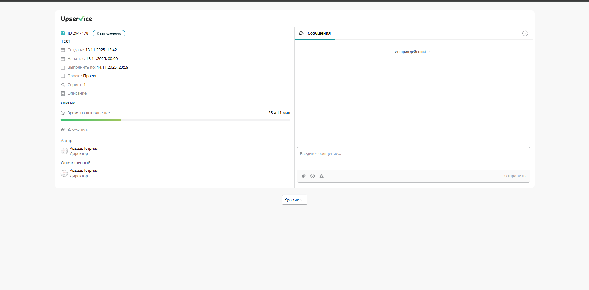 - Так же он может перейти в любую задачу и увидеть основную информацию в ней и отправлять комментарии: