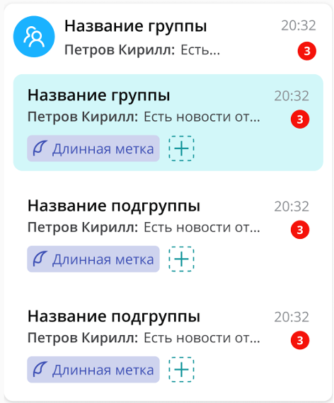 Групповой чат в списке работает по принципу раскрывающегося списка. Это позволяет быстро управлять отображением веток и не перегружать интерфейс.