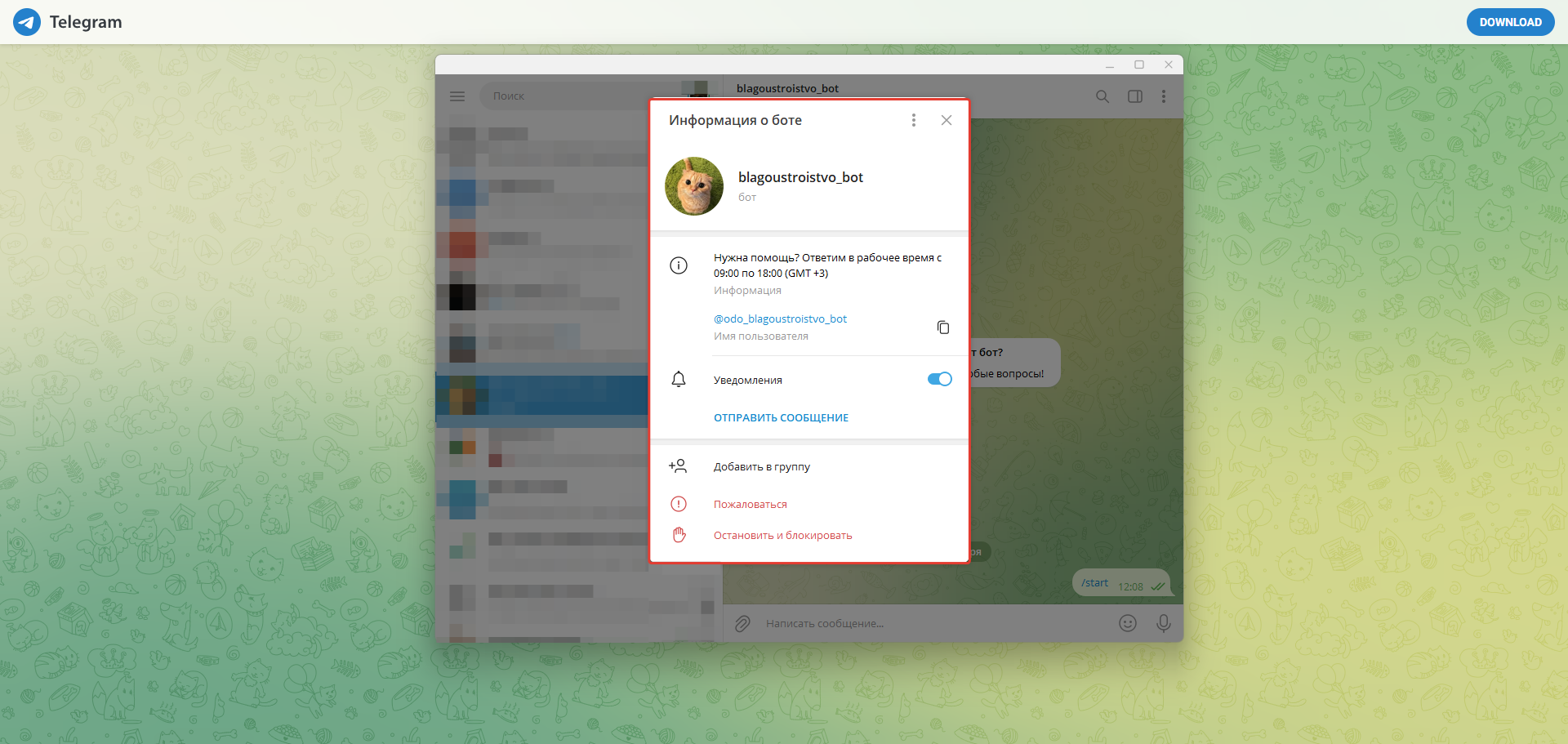 Вы завершили оформление Telegram-бота! Теперь у него есть все необходимое, чтобы пользователи могли вас найти и ни с кем не перепутать: