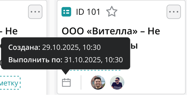 Также вы можете видеть Дату создания задачи на канбан доске: