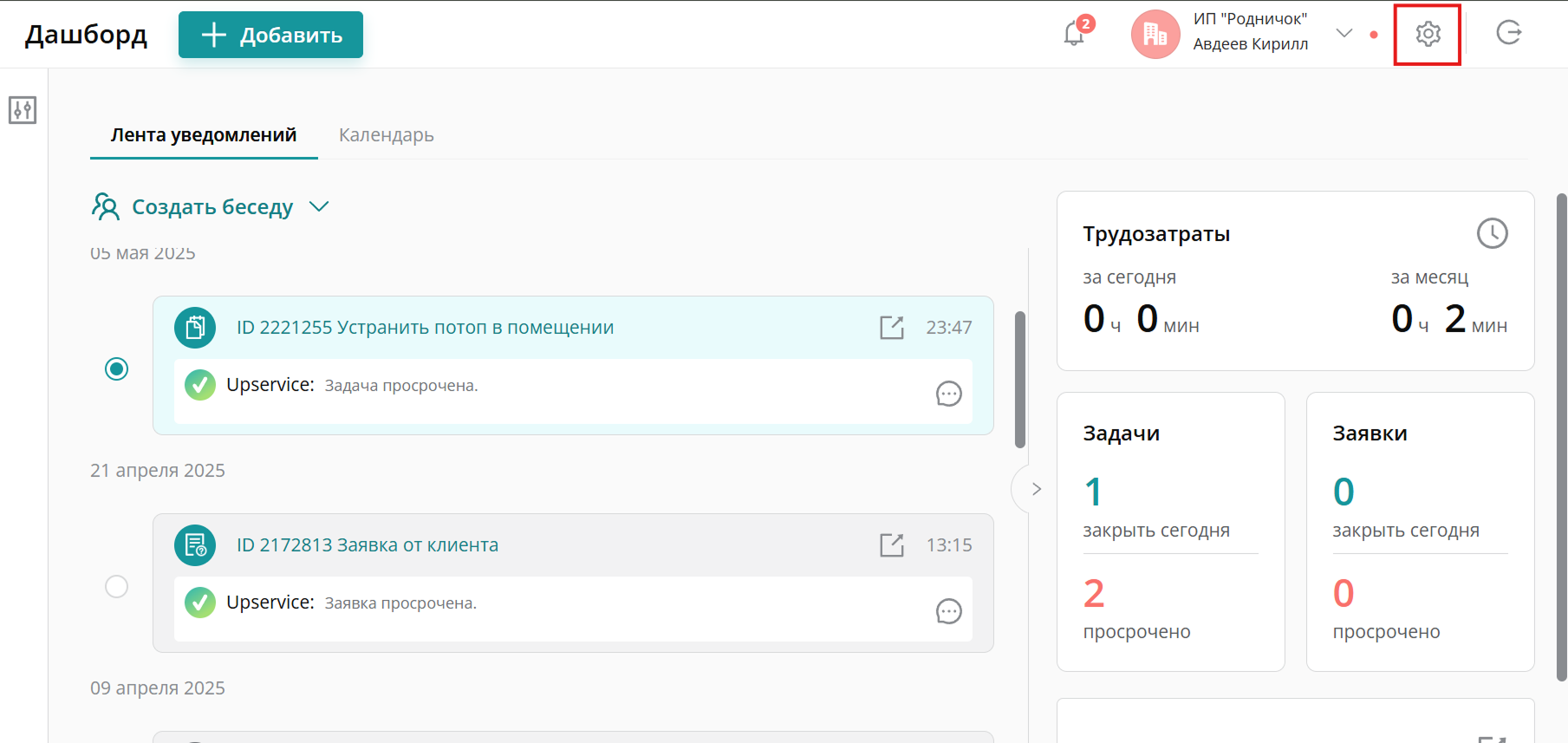 Чтобы перейти в настройки безопасности вам достаточно нажать на значок шестеренки в правом верхнем углу рядом с названием вашей компании: